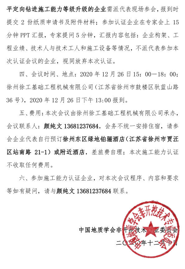 鑒于疫情的不確定性,2020年CSTT水平定向鉆進施工能力認證專家評定會(施工能力審核)計劃就召開這一次。請有需要的單位,詳細閱讀本通知,并于2020年12月24日前提交審核材料,逾期將不再受理。