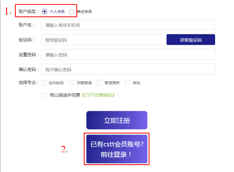 如果已有賬號(hào),請(qǐng)選擇已有CSTT會(huì)員賬號(hào)?前往登錄。